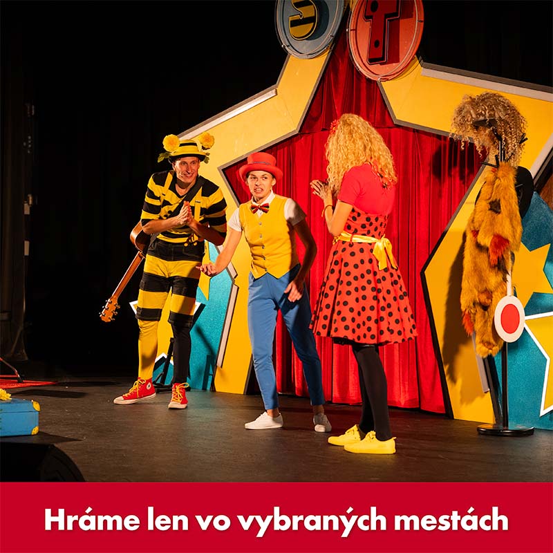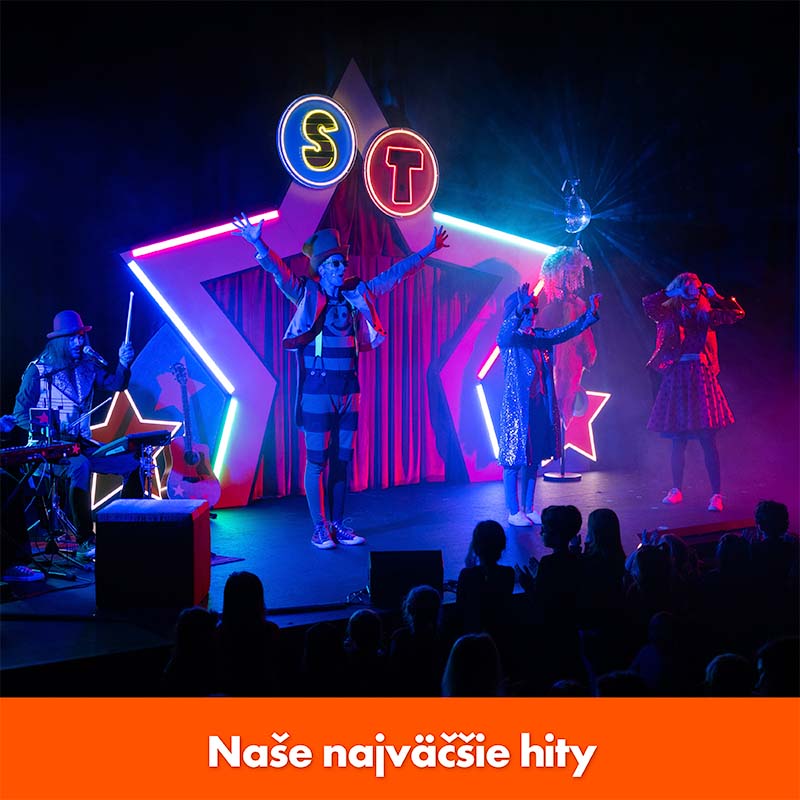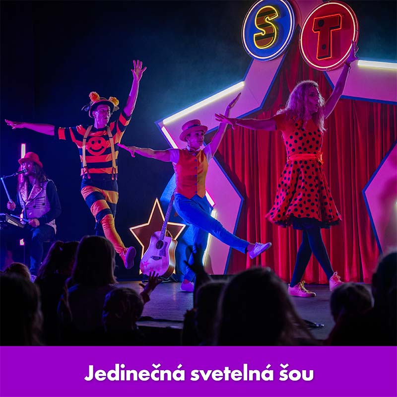 10 výnimočných rokov s vami, chrobáčikovia! Oslávte to s nami a s našimi najlepšími pesničkami v hudobnej šou Hviezdne hity! Najprv vám zahráme a zaspievame skutočne tie najväčšie pecky z rozprávkového sveta pre najmenších: Vlk a kozliatka, Papagáj, Fúľa bakaná a možno príde aj Baba Jaga. Zaspievame si spoločne Nonono tytyty, Šlapy šlapy a Človeče, nehnevaj sa. A snáď vyjde čas aj na Hu alile! Ale potom už skutočne rozbehneme tú pravú rytmickú tanečnú šou s megahitmi ako Bez plastu, Ahoj Ahoj, Pápá, Bicykel, Doma, Výnimoční, či Mávame. Samozrejme bude aj prekvapenie. Dokonca k nám zase zavíta obrovský maskot Macko Duško. Nenechajte si ujsť Hviezdne hity vo výročnom predstavení so Smejkom a Tanculienkou! Spolu s nimi príde samozrejme Huncúlik, Bumbác a Panpiano. Tešíme sa na vás ako si spoločne zaspomíname, zatancujeme a zabavíme. Uvidíme sa len vo vybraných mestách.